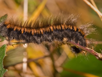 But it’s the caterpillar stage that really steals the show. Before they take to the skies, fox moths live for many months as large, boldly banded caterpillars. They can grow up to 7cm long and are covered in thick, dark hairs, almost bristly to the touch. Down their sides run bright orange or tawny stripes that give them a flame-like appearance - something you don’t forget in a hurry.