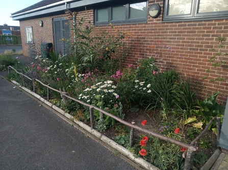 I live in a part of town that seems to be grey paving and endless houses everywhere, without any sign of wildlife or colour. When the wet and cold winter weather sets in, it can feel very depressing if you're used to the greener edges of town. After a while I concluded that I needed to make a change around here, so that I can focus on that... on something positive. This change manifested in turning the unloved front garden at the local community centre into a spot of delight.