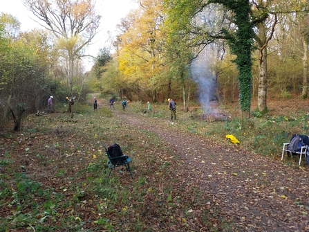 On 18th October Hampshire Fungus Group had a foray in the reserve and produced some interesting records. But it was on 29th October that the best discovery was made. Whilst cutting ride edge scrub including some holly, I found holly parachute fungus (Marasmius hudsonii).