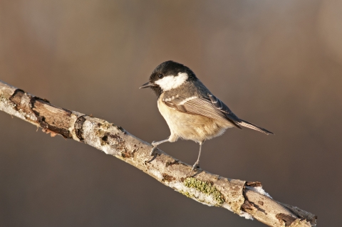 The coal tit is a small tit of coniferous woodland, although it can be found in parks and gardens where there are conifer trees. It nests in holes in trees, but is just as happy to use nestboxes. Coal tits are active feeders, hunting out insects and spiders among the smaller branches and leaves of trees in woodlands. But they are also well-adapted to gardens and towns and will visit birdtables and feeders. In winter, they form flocks with other tits, roaming woodlands and gardens. They have a song of repeated phrases that are similar to those of great tits, but sound thinner and more high-pitched, like bicycle pumps.How to identify